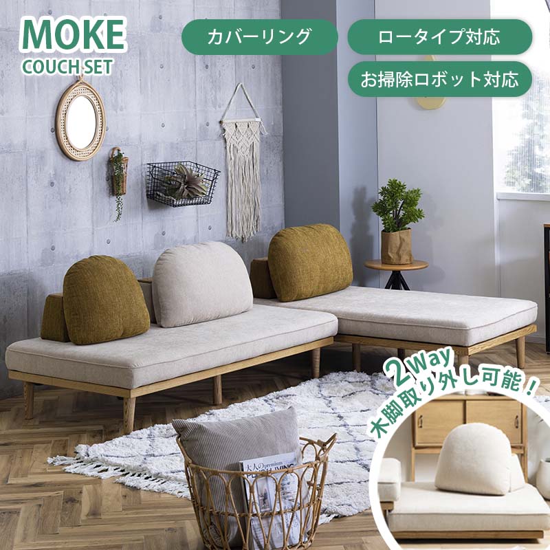 カウチソファ moke モーク 組合せソファー フロアソファ デイベッド カバーリング ロータイプ お掃除ロボット対応 無垢材 1人暮らし 新生活 関家具 nora ノラ