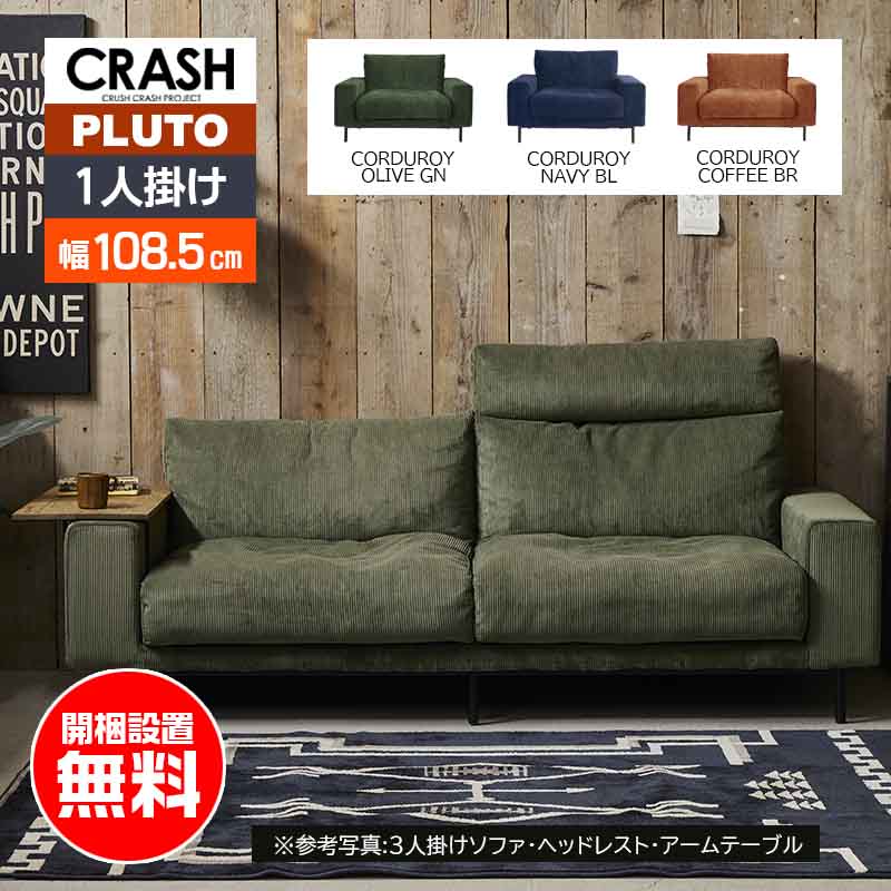 別注 ソファ 1人掛け プルート pluto comform 1P ソファー ファブリック コーデュロイ生地 3色 ヴィンテージ風 スチール脚 ローバック フェザー リビング 関家具