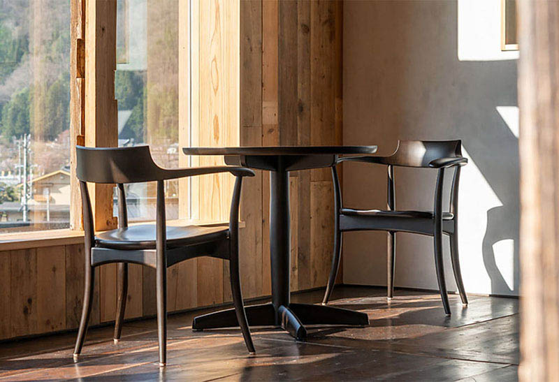 ただ単純に脚を外に出すのではなく、曲木を用いて足を外側に向け曲木の耐久性を活かしながらデザインに生かす美しい作りになっています。