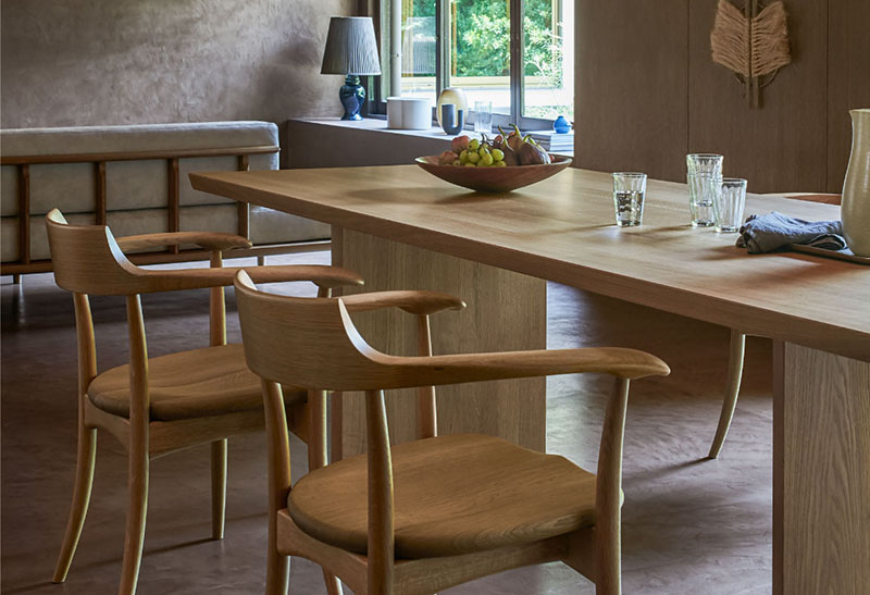 ※こちらのクレセント、アームチェアは天然の無垢材を用いた商品です。