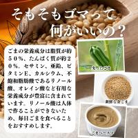 セサミン、セレン、リグナン、カルシウム、鉄、亜鉛、トコフェロール(ビタミンE)を含有。金胡麻には旨味とコク