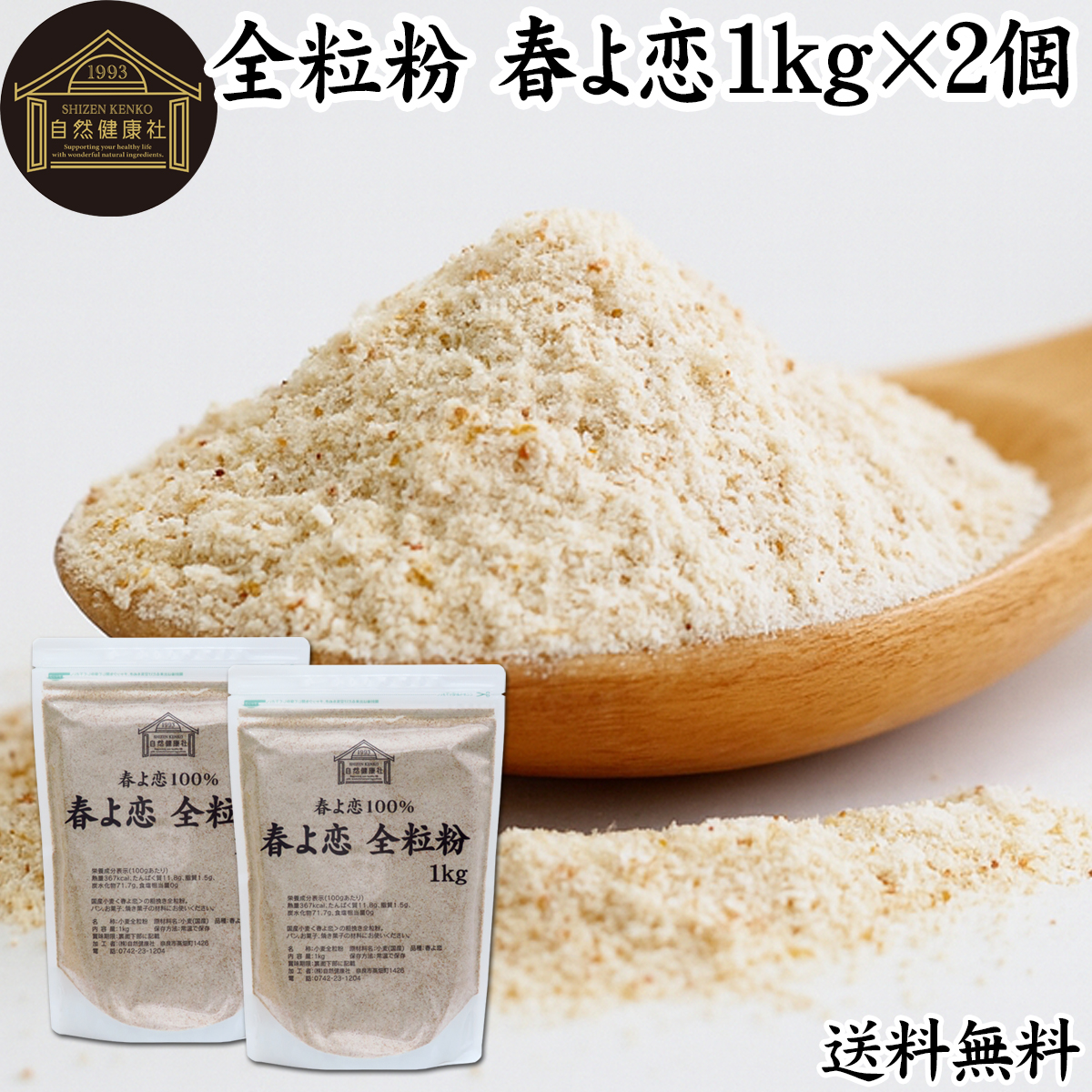 全粒粉 春よ恋 1kg×2個 小麦粉 国産 強力粉 パン用 業務用