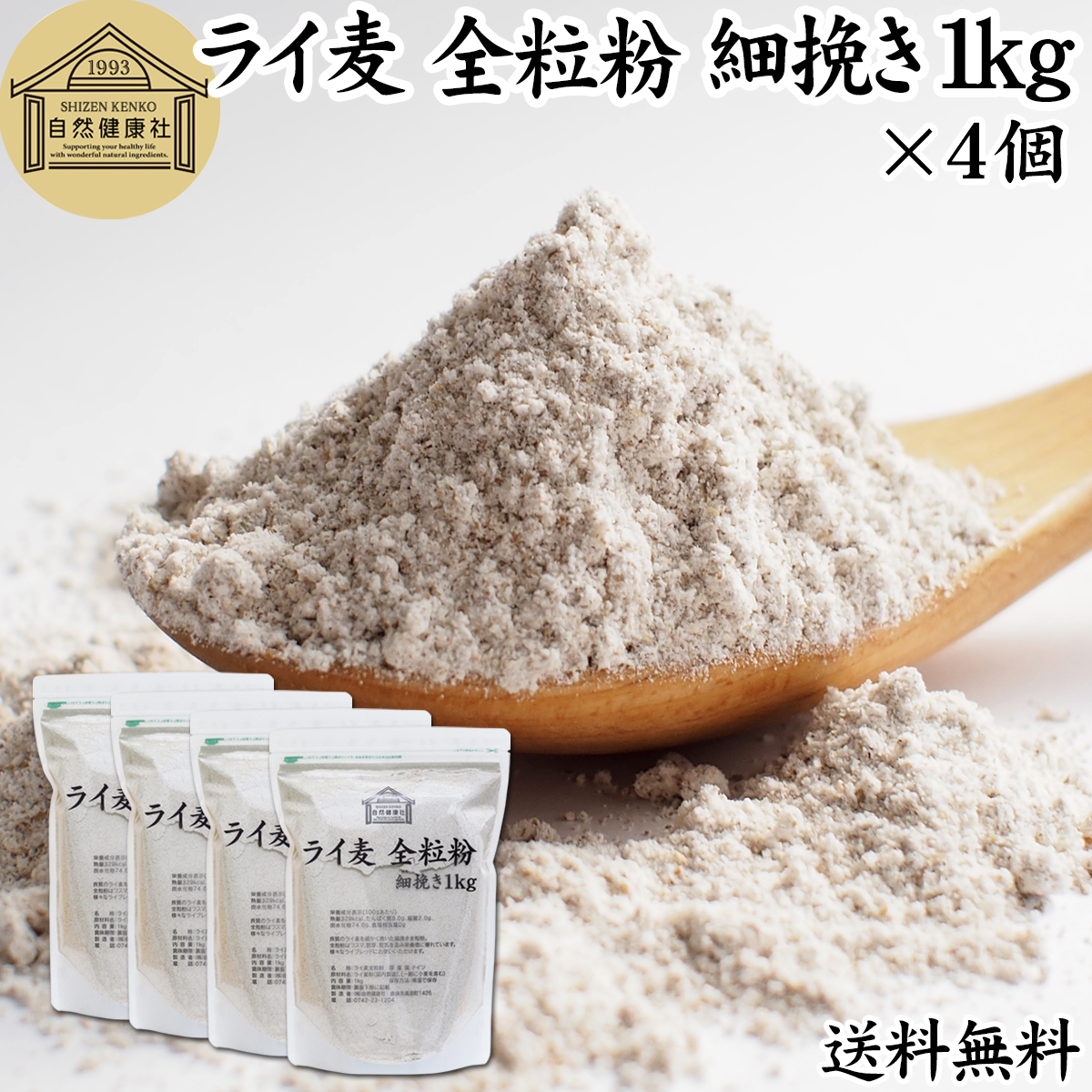 ライ麦全粒粉 細挽き 1kg×4個 細挽 ライ麦粉 ライ麦パン用 送料無料