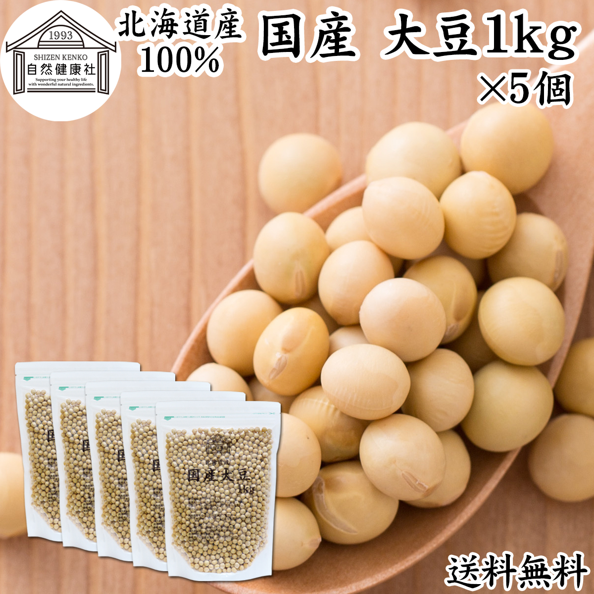 大豆 1kg×5個 国産 北海道産 トヨマサリ 生豆 無添加 100% 送料無料
