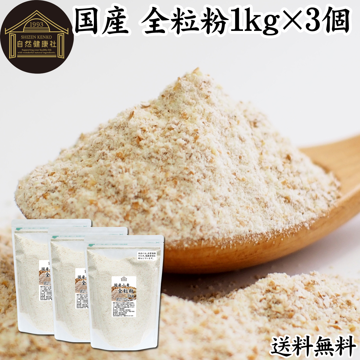 全粒粉 1kg×3個 小麦粉 国産 強力粉 パン用 業務用 ぜんりゅうふん