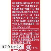 亜鉛食ミックス:黒ごま(ミャンマー産ほか)、かぼちゃの種(中国)、ひまわりの種(アメリカ)、松の実(中国)、オリゴ糖、澱粉、蜂蜜