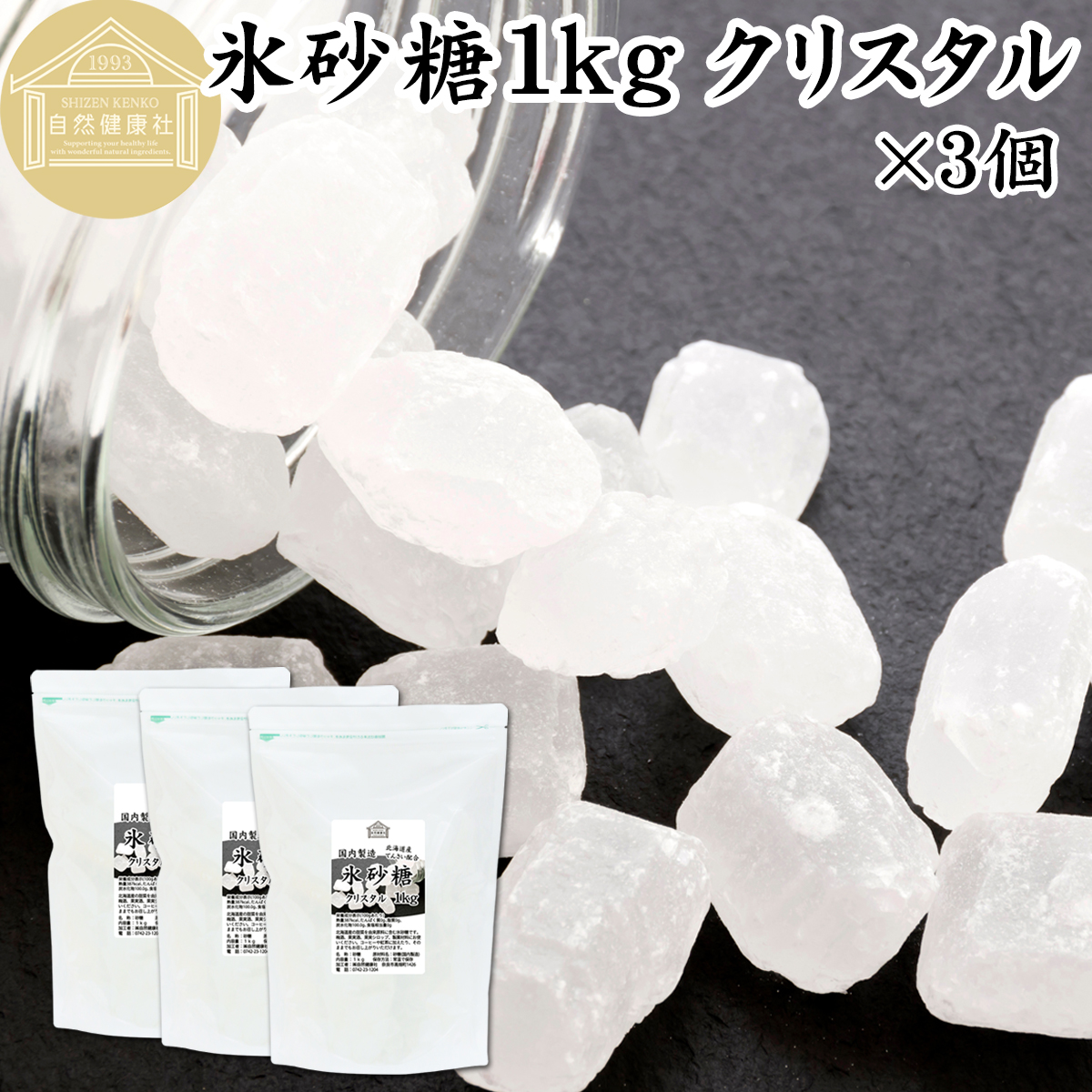 氷砂糖 1kg×3個 クリスタル 梅酒用 果実酒用 北海道産 てんさい糖使用