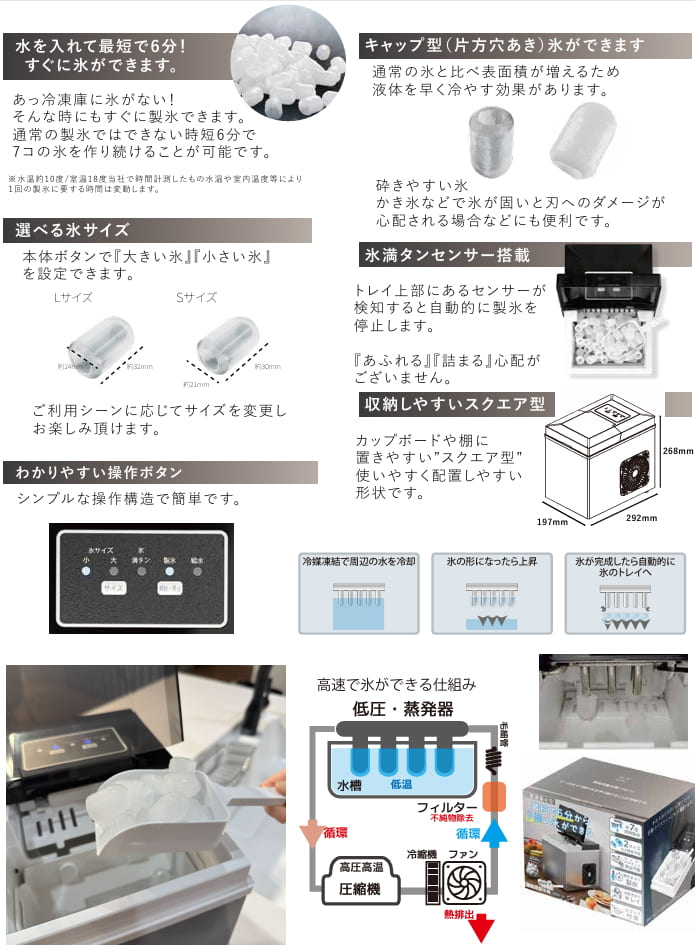 【製氷サイズ】大サイズ(7.5〜8g) / 小サイズ(6.5〜7g)