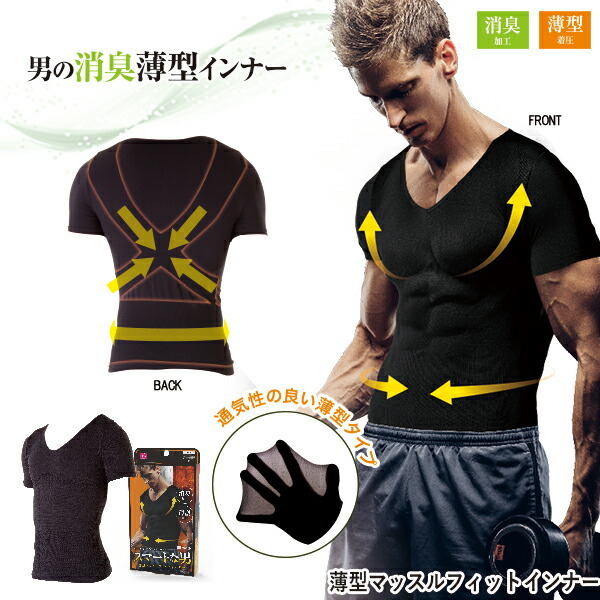 すっきり爽快!消臭加工繊維使用、薄型インナー。消臭加工で気になるニオイもケア!ピッタリフィットする薄型タイプ!加圧シェイプで引き締め!