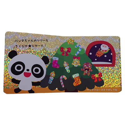 0歳からの読み聞かせにぴったりな絵本!全ページが“キラキラのホログラム”仕様になった、あかちゃんのためのえほんです。視力が弱いあかちゃんでも認識しやすい白と黒で描かれたパンダちゃんといっしょに、素敵なクリスマスを楽しもう。
