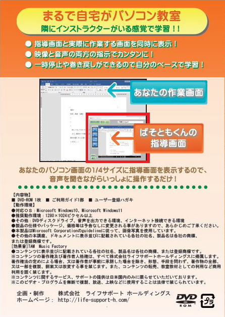 パソコン初心者はもちろん、シニア、テレワークの方に最適。ご家庭で簡単にパソコンの独習ができます。