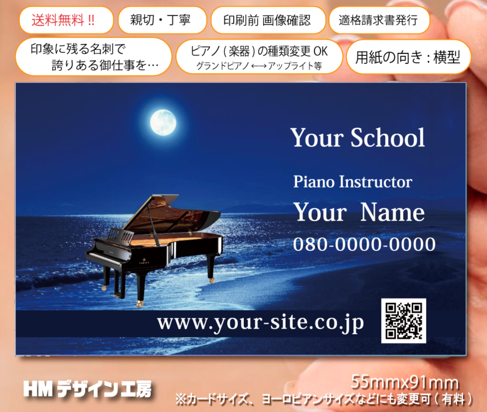 商品番号k057-02[片面/両面]フルカラーデザイン名刺「ピアノ」100枚【送料無料】