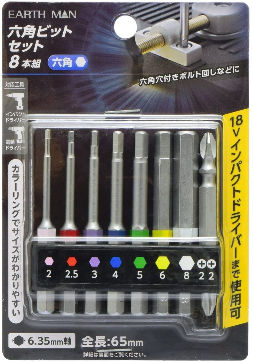 六角軸 六角ビットセット 8本組 【メール便送料無料】EARTH MAN 高儀