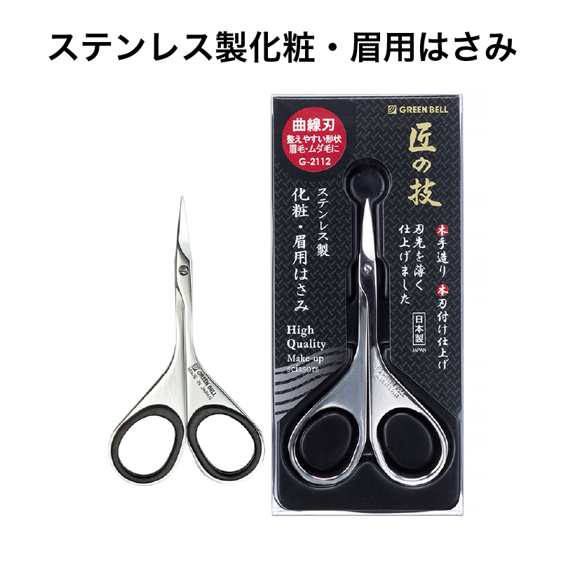 匠の技 ステンレス製化粧・眉用はさみ G-2112 グリーンベル 《メール便送料無料》