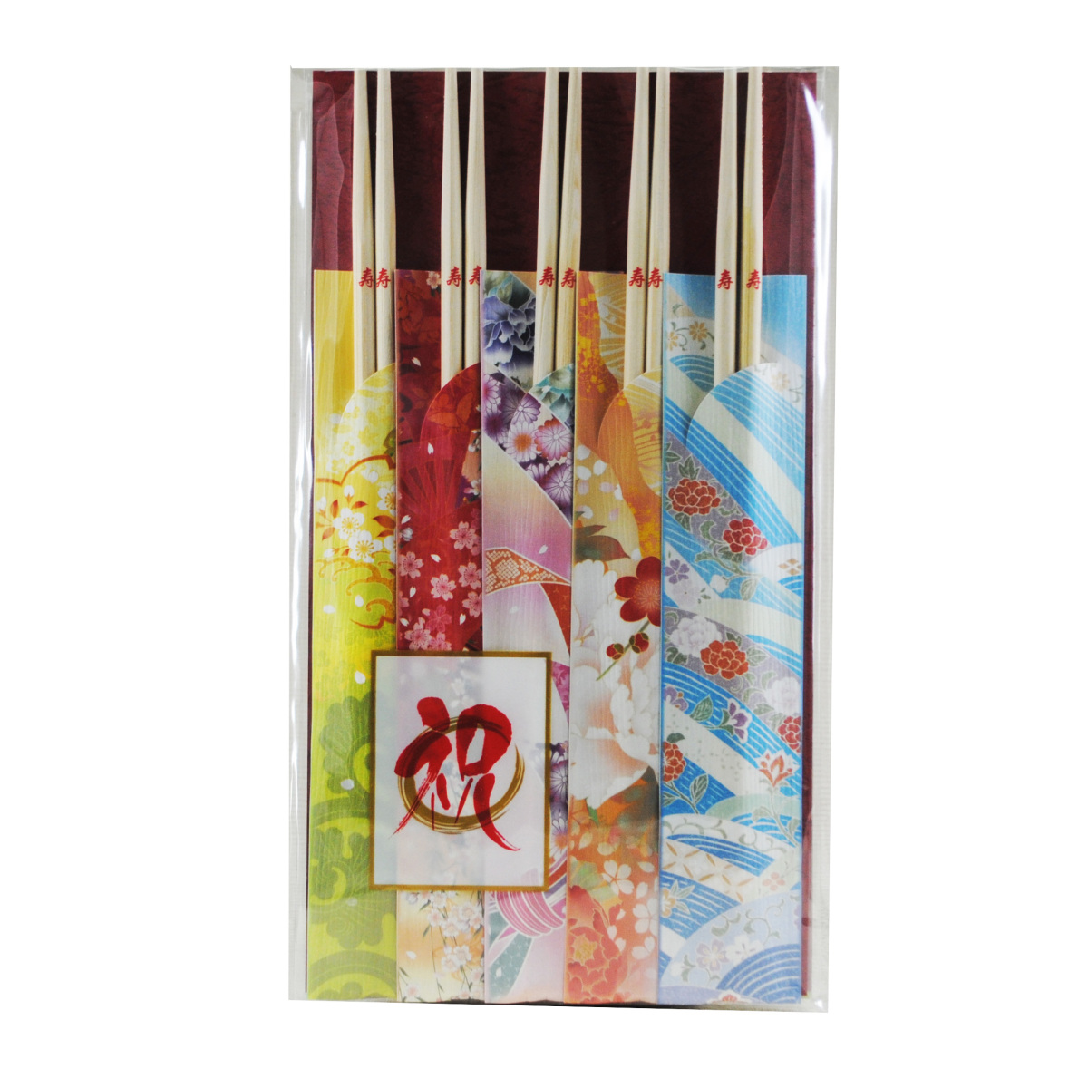 祝箸 国産ひのき祝箸友禅揃い ことほぎ(寿)5膳組 国産 国内加工