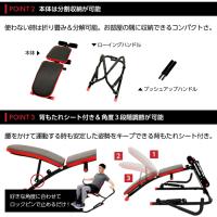 「ローイング」「アームカール」「レッグエクステンション」「シットアップ」「レッグカール」「プッシュアップ」の6種類のトレーニングができるので、手軽にバランスよく筋トレをおこなうことができます。