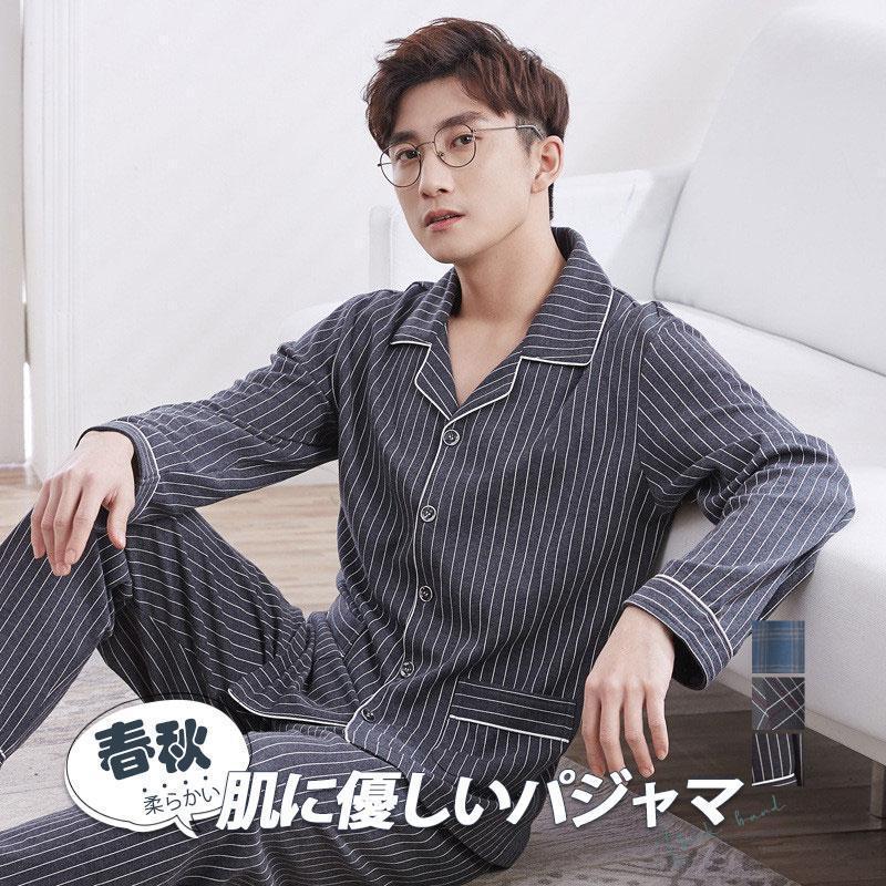 パジャマ メンズ ルームウェア 夏 秋 セットアップ 薄手 父の日 ギフト 長袖 前開き シャツ 上下セットパンツ 寝巻き 春