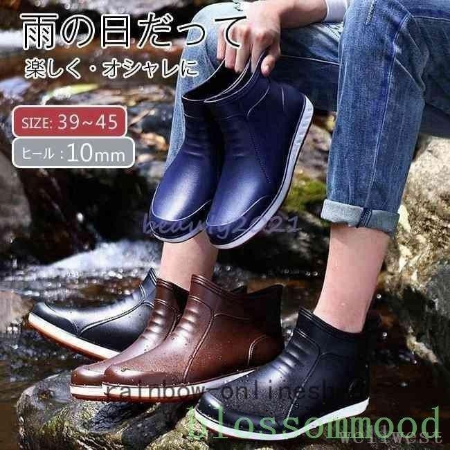【値下げ】レインブーツメンズ長靴ショート丈厚底ラバーブーツレインシューズラバーシューズブーツカジュアル滑りにくいおしゃれ雨靴防水作業靴仕事用