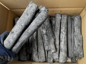 火付きが良くないので火おこしは、黒炭や専用道具を使用すると容易に着火できます。