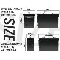 米軍でM60マシンガンなどの7.62mmベルトカートリッジを運搬・保管するのに用いられたボックス「M19A1」と、米軍でM2ブローニングなどのCal.50ベルトカートリッジを運搬・保管するのに用いられたボックス「M2A1」をリアルに再現しています!