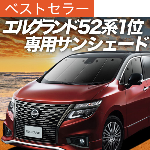 ■適合車種■ ★エルグランドE52系 PE52 TE52 PNE52 TNE52 ※他グレードも上記適合車種とおなじガラス形状であれば装着可能です。 ※フロントサンシェードを取り付けの際、運転席・助手席に装備されているサンバイザーで固定すると便利です。
