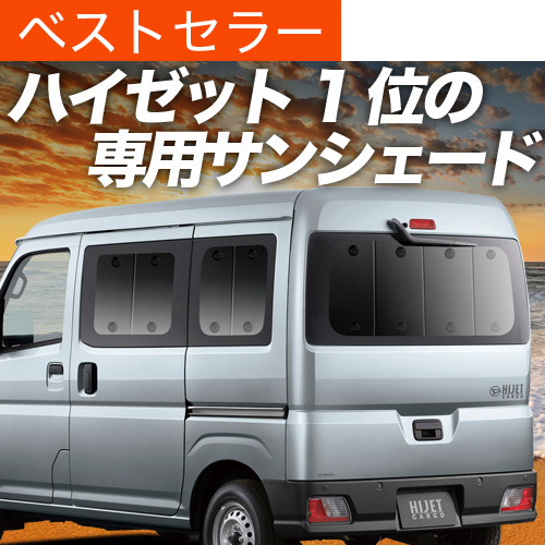 ■適合車種■ ★ハイゼットカーゴ S700V 710V ※デッキバンは対応しません ※他グレードも上記適合車種とおなじガラス形状であれば装着可能です。 ※視界補助パックオプション車はリアハッチガラス上部にスマートインナーミラーカメラがあるため、リアハッチガラスにサンシェードを装着される際、室内側上部のカメラカバーとガラスの僅かな隙間にサンシェードを挟み込むように左右へ動かしながら装着します、車両の特性上、予めご理解の上ご購入ください。※ハイゼットカーゴ等のスライドドアには、凹みカバーで隙間に対応します