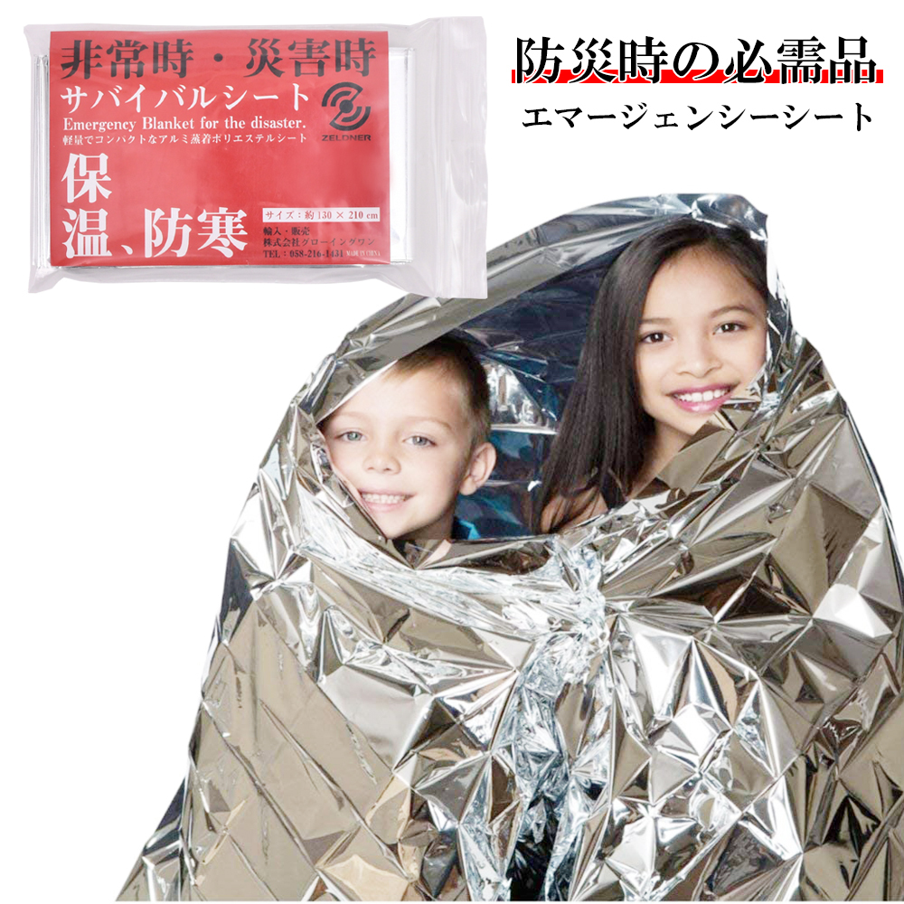 | 急激な気温の変化や災害などの緊急時に対応するために開発された、極薄アルミの簡易毛布保温シートです。 外気の温度変化や雨風などから身を守り、防風・防水・保温のエマージェンシーシートです。 地震などの災害時や登山での遭難時に、このサバイバルシートを持っていると生存率があがります。 災害時に避難した場合、避難所など限られたスペースでプライバシーを確保するための仕切りとしてもご利用頂けます。 超軽量でコンパクトなエマージェンシーシートなので、防災バッグや車などに常備しておいても嵩張りません。 サイズは約210 × 130cm になり、毛布のように被ったり、シートやマットの下に敷いたりと様々な使い方が可能です。 引き裂きや摩耗に強いPE素材が使われているので、強い風に煽られても強く、引っ張っても破れにくいです。 車中泊、アウトドア、キャンプ、釣り、ツーリング、登山、地震や津波防災など様々なシーンで活用頂けます。 ■仕様 サイズ:約130cm × 約210cm 折り畳み時:約12cm × 約7cm 重量:約50g 素材:アルミ蒸着PETフィルム ■注意事項 ※海外製造品のため、軽微な傷や汚れ、バリ等ある場合がございます。 ※生産ロットによってパッケージのデザインなどが変更となる場合がございます。 ※仕様や外観等は改善の為に予告なく変更する場合があります。 ※商品の設置、仕様、使用などにより生じた、いかなる損害、被害も弊社では一切の責任を負いかねます。 ※燃えやすい素材の為、絶対に火気には近づけないでください。 ※屋外での使用の際は、太陽光の反射に十分に注意してください。 ※感電の恐れがありますので、電気に触れないようにご注意下さい。 ※通気性がない素材ですので、頭部を出してご使用ください。 ※ディスプレイやPC環境により、色味や素材感など実物と異なって見える場合がございます。 |