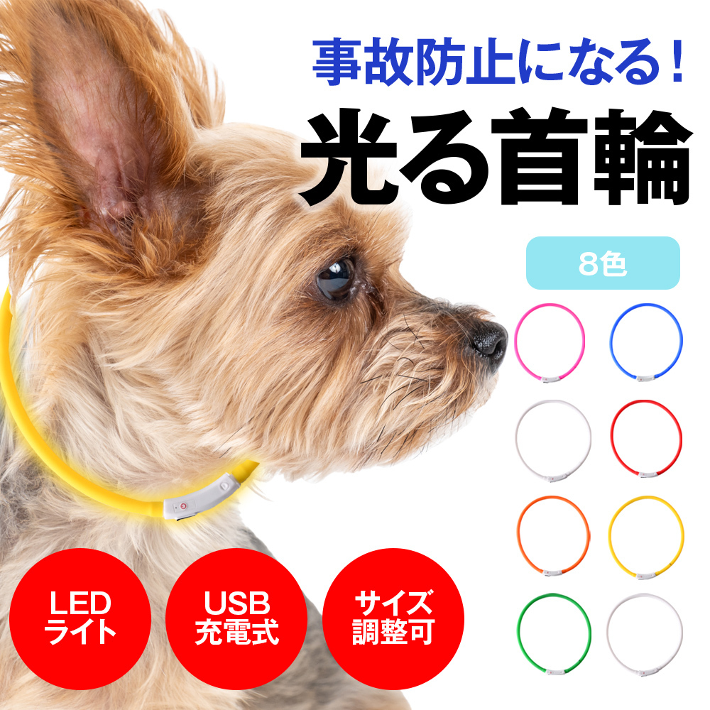 | 夜のお散歩 こんなお悩みありませんか? 〇街灯のなどが無い場所など、ワンちゃんが視認出来なくて危ない 〇夜道で自転車や人にぶつかりそうになってヒヤッとした 〇リードが外れてワンちゃんが迷子になったことがある 〇車がスピードを落としてくれなくて危ないと感じる時がある そんなお悩みに解決できる商品が、当店の『光る首輪』です! 夜のお散歩では、飼い主さんが蛍光色や反射材が付いた服やタスキなどをしても、逆に危ない場合があります。 向かってくる人や、自転車、車やバイクなどが、飼い主さんの反射材は目視しやすく注意するものの、地面に近い低い位置にいるワンちゃんに気付かないことがあるからです。 飼い主さんが目立つ格好をするだけでなく、地面に近く低い位置を歩いているワンちゃん自体に、他者が視認できるものを付けてあげると、より安全に夜のお散歩ができます。 📌とっても明るく視認性抜群! チューブの厚みは耐久性を損なわず、LEDライトの発光を妨げないギリギリの厚みを検証しました。 その為、とっても明るく視認性が抜群!500m先からでも視認できるほどの明るさです☆ 暗い夜道のお散歩中でもよく目立ち、対向する人や自転車、車など、遠くからでも認識することができます。 📌簡単に長さの調節が可能! 首輪の長さ調節は、ワンちゃんのサイズに合わせてカットするだけ! ハサミで簡単にカットできるので、小型犬から大型犬まで様々なサイズのワンちゃんに使用可能です。 【長さの調節方法】 1:電源ボタンとは反対側のチューブをゆっくりと引き抜きます。 2:ワンちゃんの頭が通る程度の適切な長さにハサミでカットします。 3:チューブを元に戻して完成です。 ※LEDライトの配線ごとカットしてもLEDライトは点灯します。 📌便利なUSB充電タイプ! 電池タイプだと、ワンちゃんに負担になる重さになってしまいます。 本商品は小型のバッテリーを内蔵しており超軽量! USB充電することで、何度も繰り返して使用可能なので、とても経済的です。 📌選べる点灯モード! 『点滅(速)・点滅(遅)・点灯』、3つの点灯モードを搭載! お好みに合わせて簡単に点灯モードを切り替えることができます。 操作方法も簡単で、電源スイッチを押す回数によって切り替えることが可能となります。 1回押し・・・点滅(速) 2回押し・・・点滅(遅) 3回押し・・・点灯 4回押し・・・電源オフ ※レインボーのみ点灯パターンが異なります 1回押し・・・単色点滅(速) 2回押し・・・単色点滅(遅) 3回押し・・・色が変化しながら点灯・点滅 4回押し・・・電源オフ 📌着脱がとても簡単! 着脱が大変だと、ワンちゃんも嫌がってしまいますが、本商品は着脱が簡単! 光る首輪を外したい時、またお散歩に出かけるときなどの着脱は、ワンちゃんにかぶせるだけです。 📌充電状況をひと目で確認できる! 充電中⇒赤ランプ点灯、充電完了⇒緑ランプ点灯、充電の状況が一目でわかるので、とても便利です。 ■製品仕様 ・カラーバリエーション:ピンク・ブルー・ホワイト・レッド・オレンジ・イエロー・グリーン・レインボー ・サイズ:直径約23cm、円周約70cm(電源ユニット含む) ・材質:シリコンチューブ、プラスチック ・重量:約38g ・付属品:充電ケーブル ■注意事項 ※本商品に直接リードを繋ぐことはできませんのでご注意ください。 ※本商品は防水性能はありませんので、雨天など水濡れの可能性がある状況でのご使用はお止め下さい。 ※事故につながる可能性がございますので、本商品を改造することはお止め下さい。 ※海外輸入製品の為、輸送時の擦れや細かなキズ、若干の汚れなどがある場合がございます。 ※商品改良のため、細部の仕様・外観・デザインなどは予告なく変更する場合があります。 ※本製品に関する使用中の事故等は使用者の責任とご承知の程、よろしくお願い致します。 |