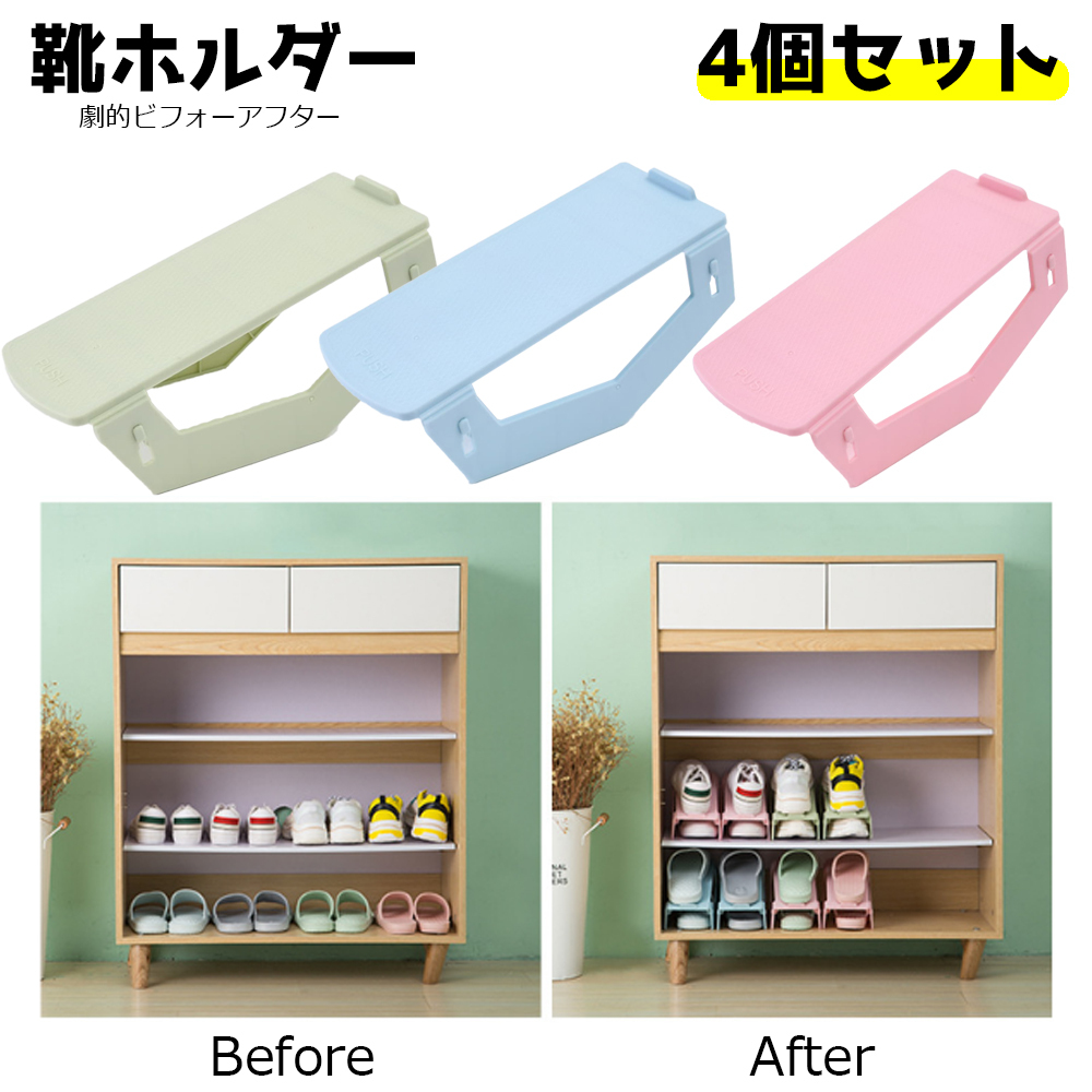 | 靴をそのまま下駄箱に入れてしまうと、下駄箱の余ったスペースがもったいないです。靴ホルダーを使用すると、下駄箱の隙間を活用することによって通常より約2倍の靴が収納できます。 シンプルなデザインでオシャレ感満載で、軽くて持ち運びが楽にできますので、和室洋室問わずコーディネートして頂きます。 下駄箱だけでなく、寝室やクローゼット、ワードロープにも置けるので、非常に便利で使い勝手がいいです。 サイズ:25cm×9.7cm×14.3cm メイン素材:PP 重量:約84g カラー:ピンク・ブルー・グリーン ※本商品は同色4点セットでの販売となります。 ※素材感や色合いの表現には差があります。お使いのパソコンのモニター環境により色合いが異なる場合がありますので、ご了承の上ご注文お願い致します。 |