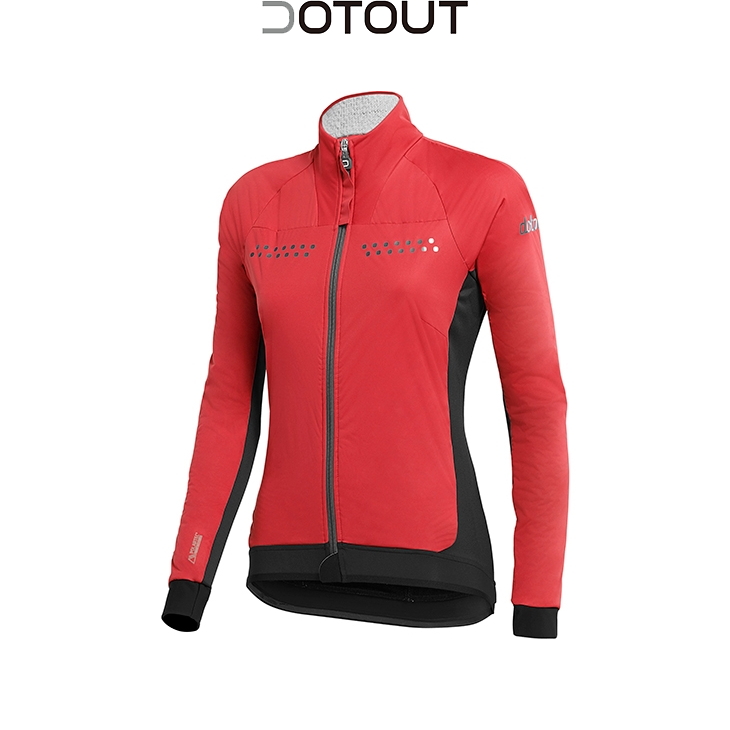 Mantra W Jacketは、人間工学、保温性、軽量性、テクノロジーにおいて、非常に要求の厳しいサイクリストのニーズに応えることができるウェアで、3種類の生地を採用し、製造されています。背中と脇の下には、通気性、保温性、伸縮性を確保するために、ドットコールドウォームを採用。前身頃と袖は、外側に通気性と防水性に優れたドットエア&ウォーターブロックライトファブリック、内側に独自のPolartec? Alpha? fabricを結合させた特殊なドットサンドイッチ構造で作られています。Polartec? Alpha? fabricは、米国の特殊部隊と共同開発した素材で、通気性、保温性、速乾性において高い性能を発揮します。このように組み合わされた2つの生地は、衣服の「アクティブプロテクション」という新しい概念を導入しており、保温性と湿気の排出比率を最大限にコントロールし、長時間冷風にさらされるダウンヒルや、ウォーミングアップを終えていない走りはじめの体の冷えを回避することが可能です。さらに、Polartec? Alpha? fabricは、特殊なメッシュ構造を持つ素材で、裏地なしのダイレクトな方法で使用され、衣服に軽量性と圧縮性を確保しています。Polartec? Alpha? fabricは、ウェアのライフサイクルを通じて、その性能を保証します。