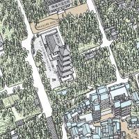 建物や街路樹など非常に精密に描かれており、単なる地図としてではなく、