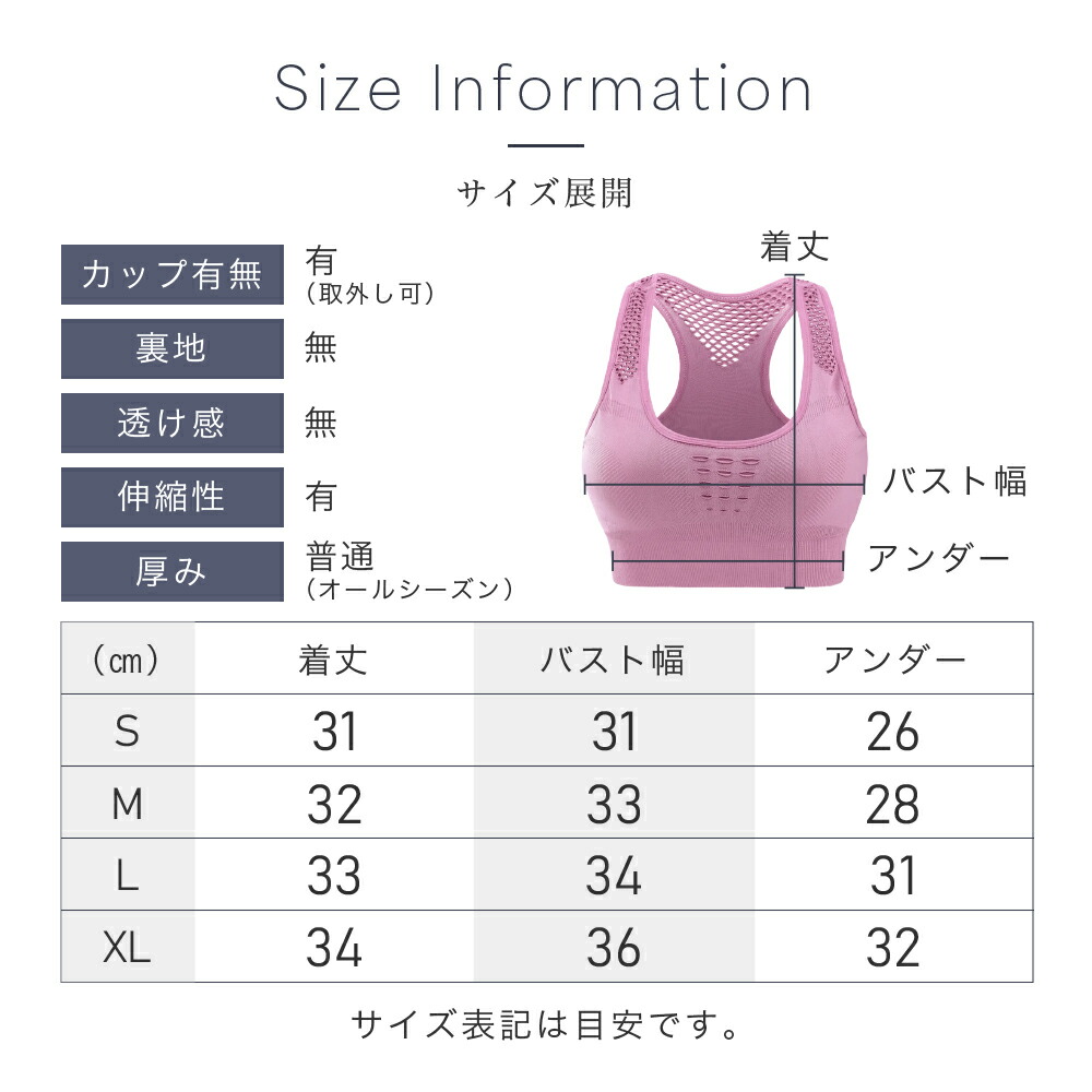 (S)着丈 31 バスト幅 31 アンダー幅 26