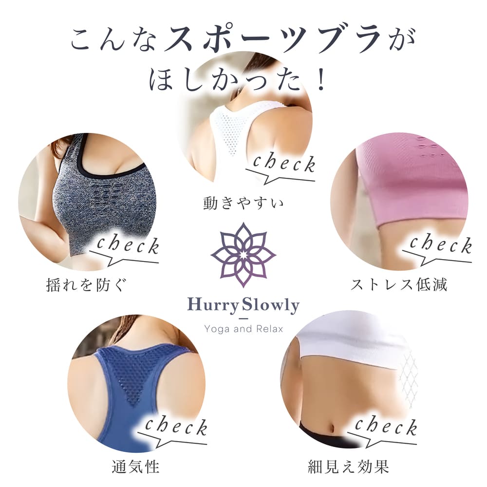 スポーツブラ 揺れない ずれない 大きいサイズ 中学生 スポブラ ヨガウェア カップ付 ピラティス 運動 ブラジャー おしゃれ HurrySlowly ハリスロ