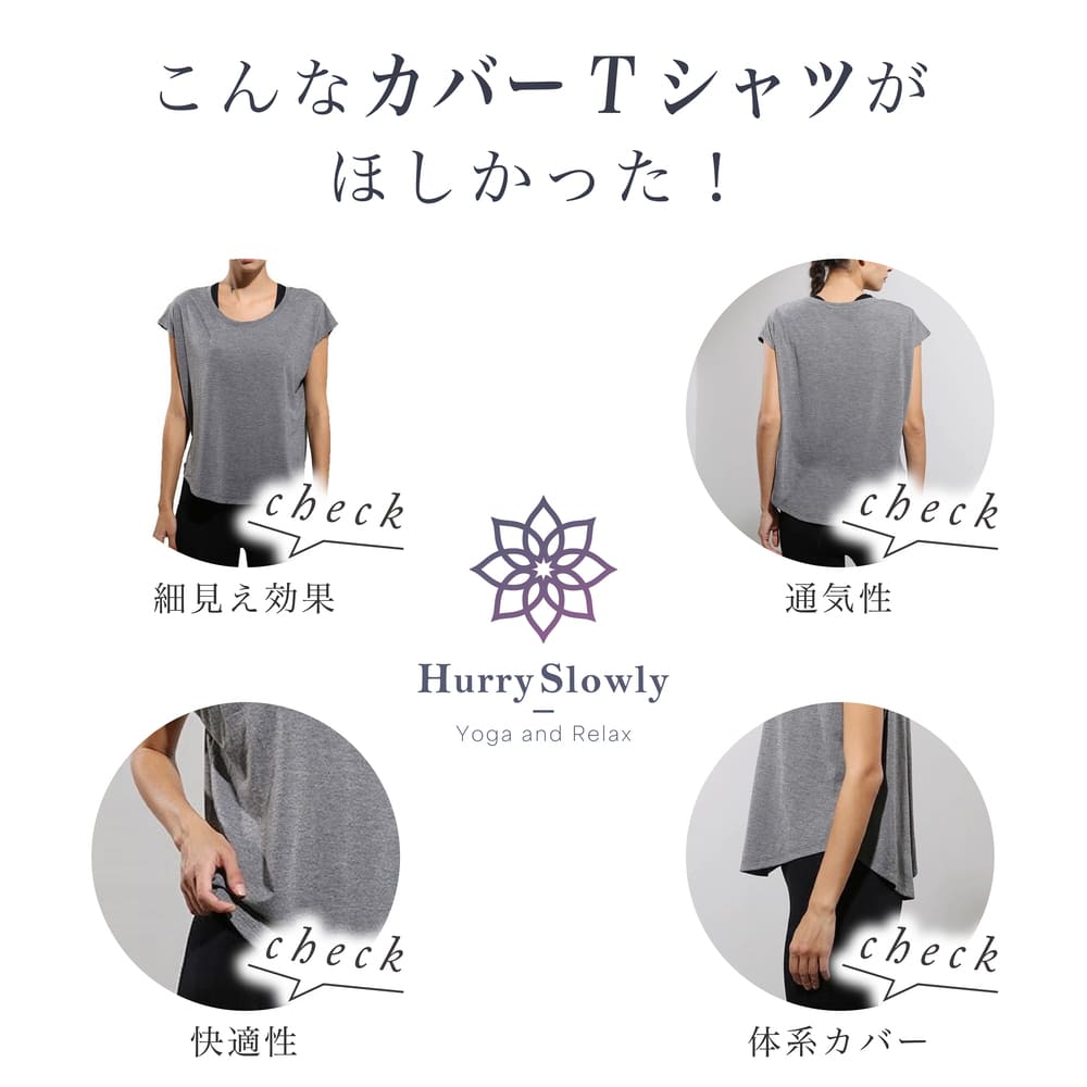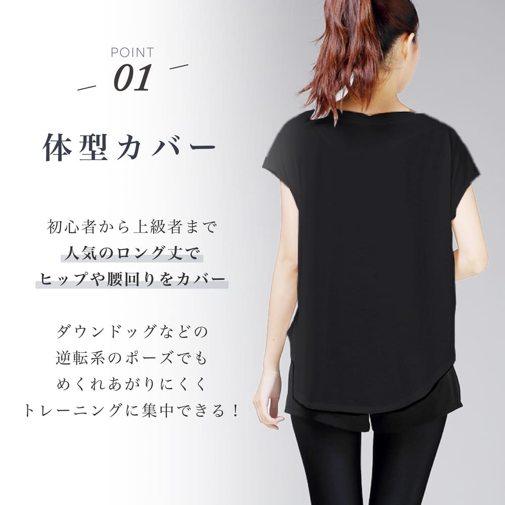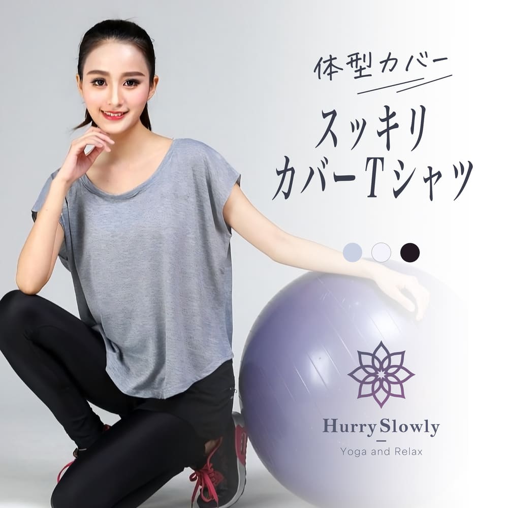 ヨガウェア トップス レディース おしゃれ かわいい tシャツ 体型カバー ヨガウェア 半袖 ロング丈 ヨガウエア フィットネス HurrySlowly ハリスロ