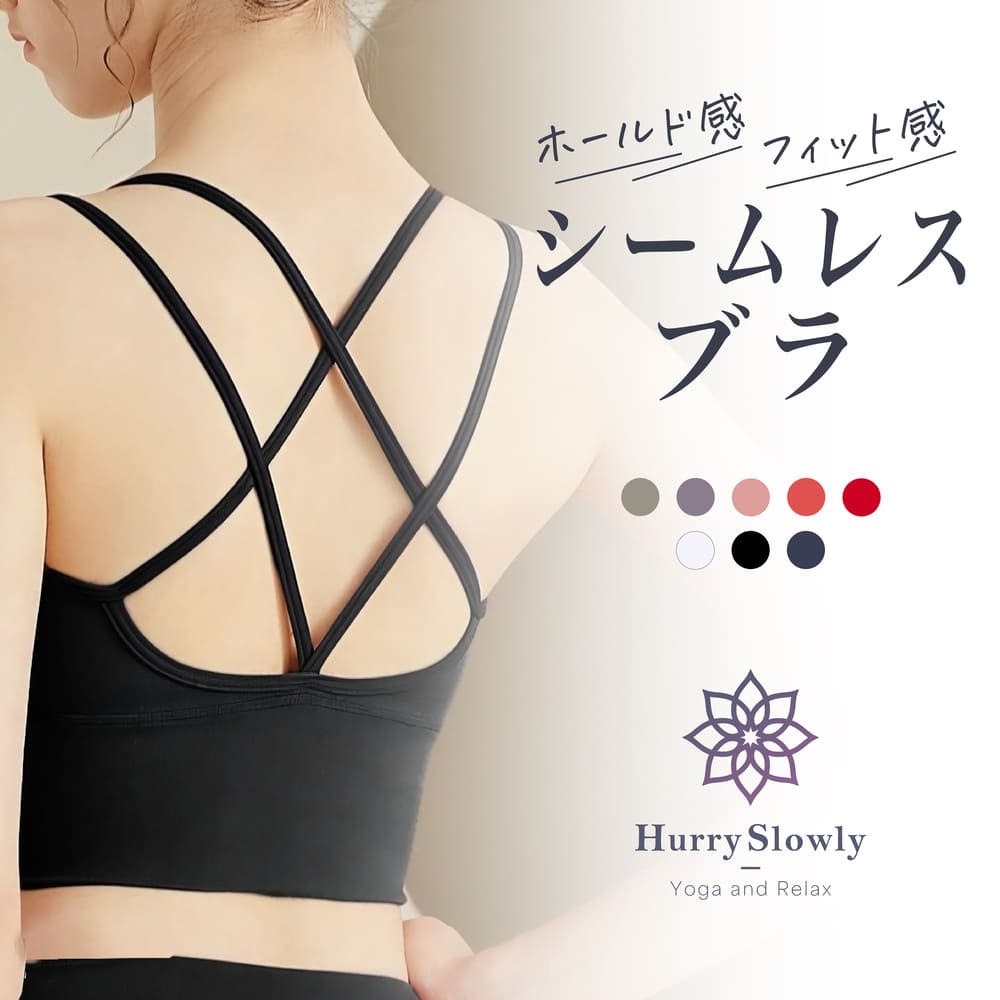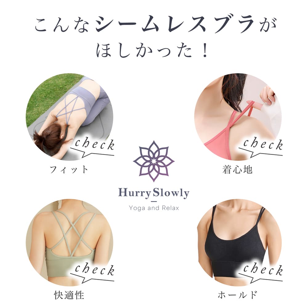 ヨガウェア トップス おしゃれ カップ付 ヨガ レディース かわいい シームレスブラ スポーツブラ ブラトップ ハリスロ Hurry Slowly
