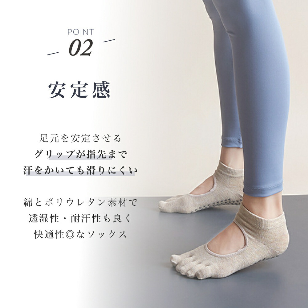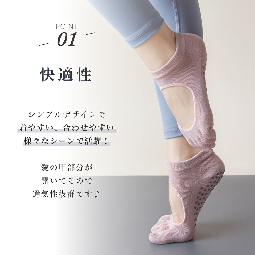 シンプルデザインで合わせやすい5本指ヨガソックス。