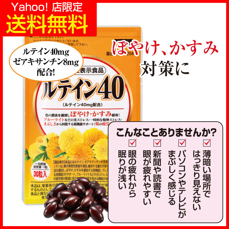 ルテイン40 眼のぼやけ、かすみを緩和 ルテイン40mg ゼアキサンチン8mg 機能性表示食品 1袋 約1ヶ月分
