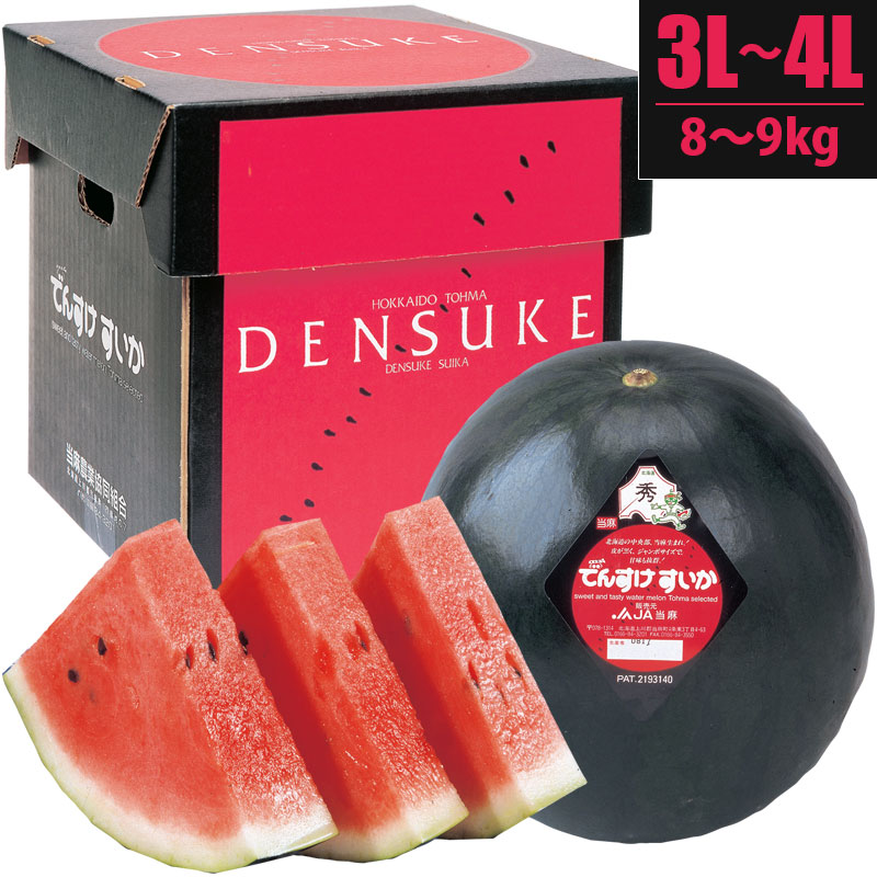 | 商品説明 | でんすけすいか日本農業賞「大賞」を受賞! 真っ黒でジャンボな外見にまずビックリ!中を割ると、鮮やかな赤が飛び込んできます。インパクトのあるスイカです。 家族で食べてもよし、夏のギフトとしても人気が高い「でんすけすいか」は、旭川のお隣「当麻町」の特産品。お中元で毎年大量に出荷されています。 北海道マルシェでは、光センサーで糖度11度以上のものを撰果した「秀品」のでんすけスイカだけをお届け致しますので甘さも抜群です。お中元、内祝、快気祝、誕生日、プレゼントなどにオススメ。 | ||
