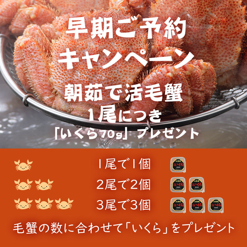 ※この商品は獲れたての毛ガニを朝茹でし、即日冷蔵で発送致します。