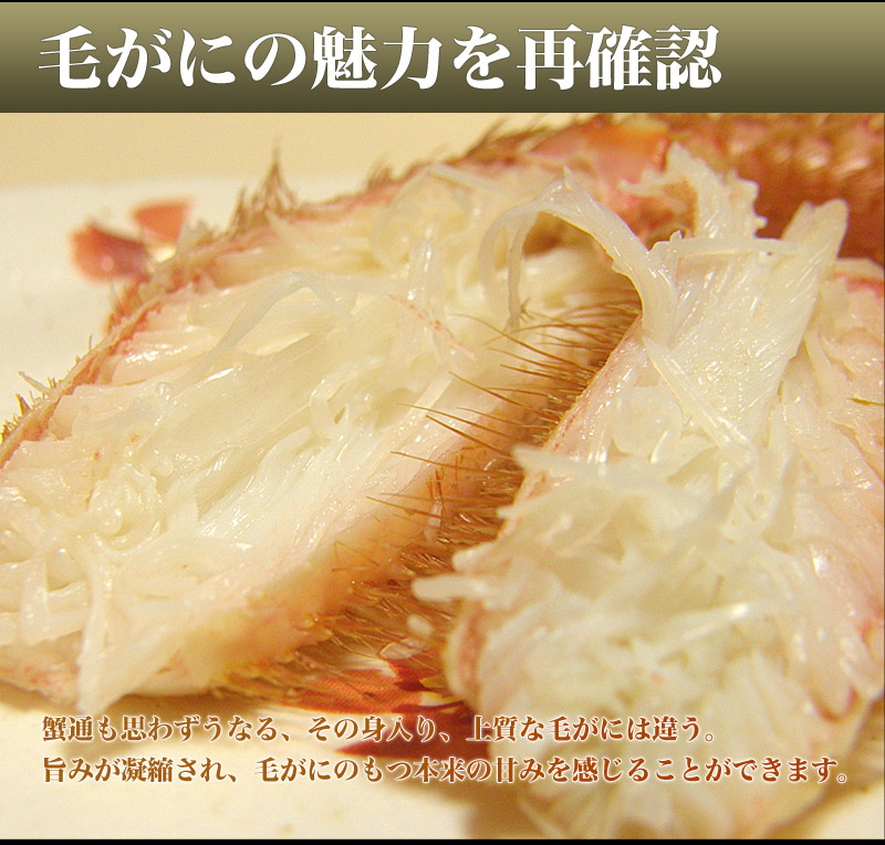 いつも食べる冷凍毛ガニとは別次元のうまさ。美味しい活毛ガニは旬のいまだけ!