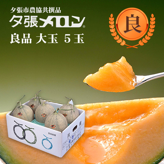 夕張市農協直送 共撰品 夕張メロン良品大玉(約1.6kg) 5玉1箱【送料無料】 北海道 お中元 贈答品 引出物 赤肉メロン お供え物 お盆 名物