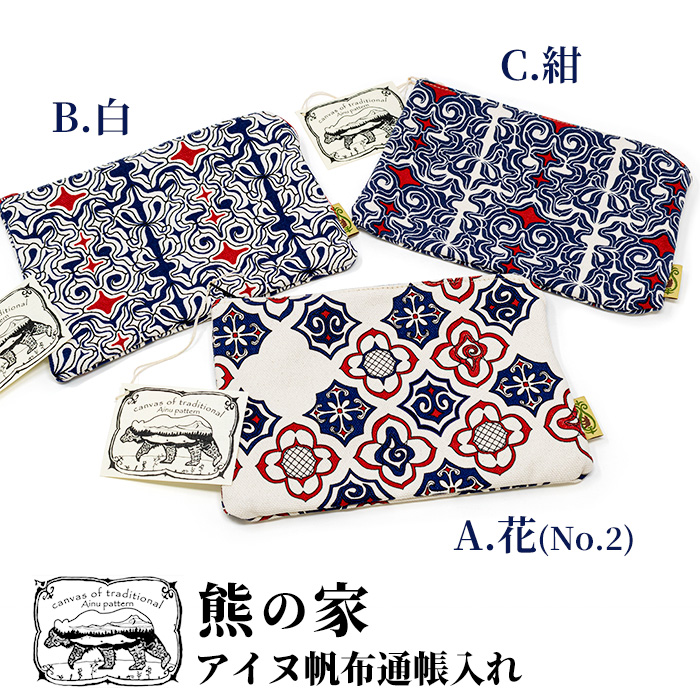 熊の家 アイヌ帆布通帳入 北海道 お土産 おみやげ 財布 雑貨 ギフト 贈答 伝統文様