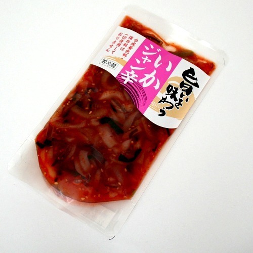 ■原材料:いか(ペルー、チリ、その他)、還元水あめ、豆板醤、食塩、にら、ごま、唐辛子、にんにく/ソルビット、酒精、調味料(アミノ酸等)、増粘多糖類、(一部にいか・ごま・大豆・ゼラチンを含む)