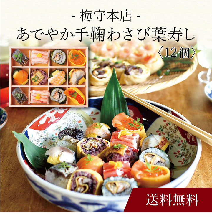 お取り寄せ 送料無料 内祝い 〔 「梅守本店」あでやか手鞠わさび葉寿し12個 NF-TW-AD12 〕 出産内祝い 新築内祝い 快気祝い 惣菜