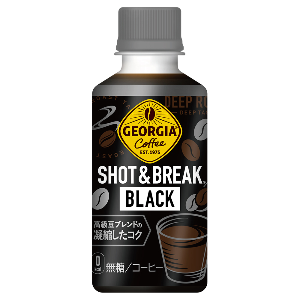『ジョージア ショット&ブレイク ブラック』は、高級豆ブレンドの凝縮したコクをお楽しみいただける小休憩のための「PETボトルのショットコーヒー」です。