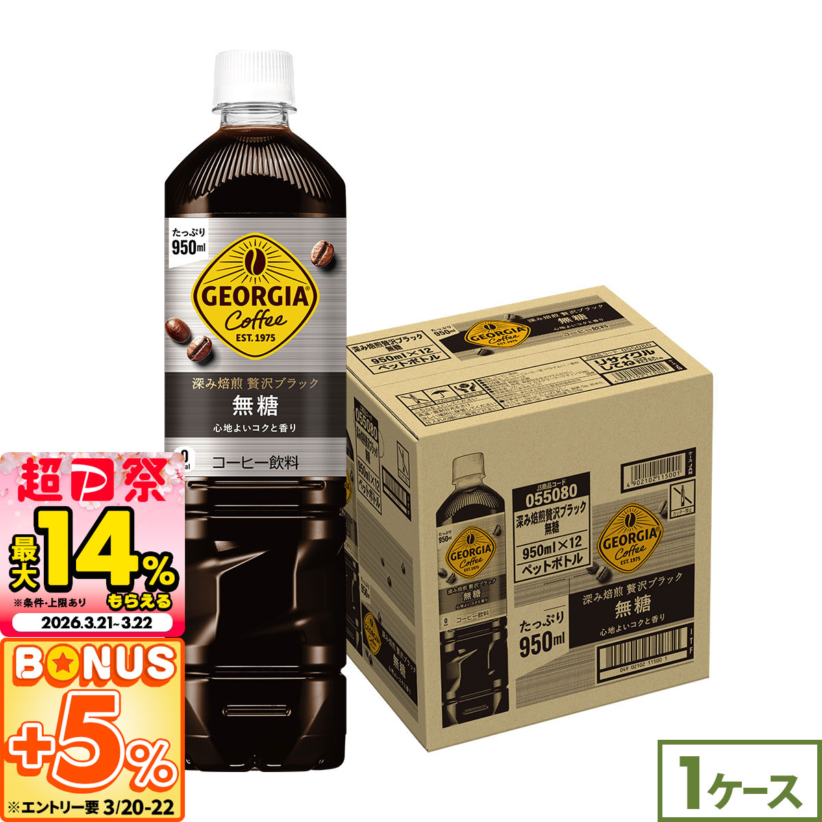 ジョージア 深み焙煎 贅沢ブラック 無糖 950ml 12本 コーヒー ペットボトル 珈琲 アイスコーヒー 大容量 芳醇な香り クリアな後味