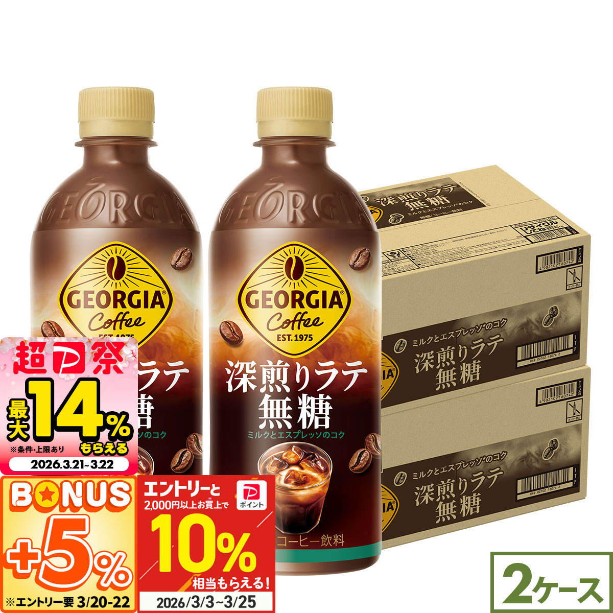 ジョージア 深煎りラテ無糖 500ml 48本 (24本×2ケース) コーヒー ペットボトル 砂糖不使用 甘くない 珈琲 エスプレッソ まとめ買い 送料無料