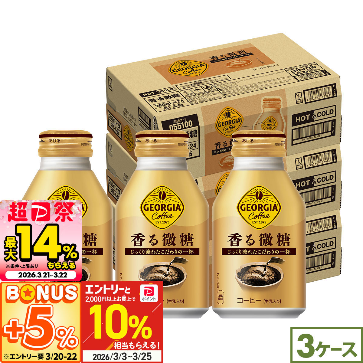 ジョージア 香る微糖 260ml 72本(24本×3ケース) ボトル缶 コーヒー 微糖 ダブルアロマ密封 蒸らし抽出 豊かな香り まとめ買い 箱買い