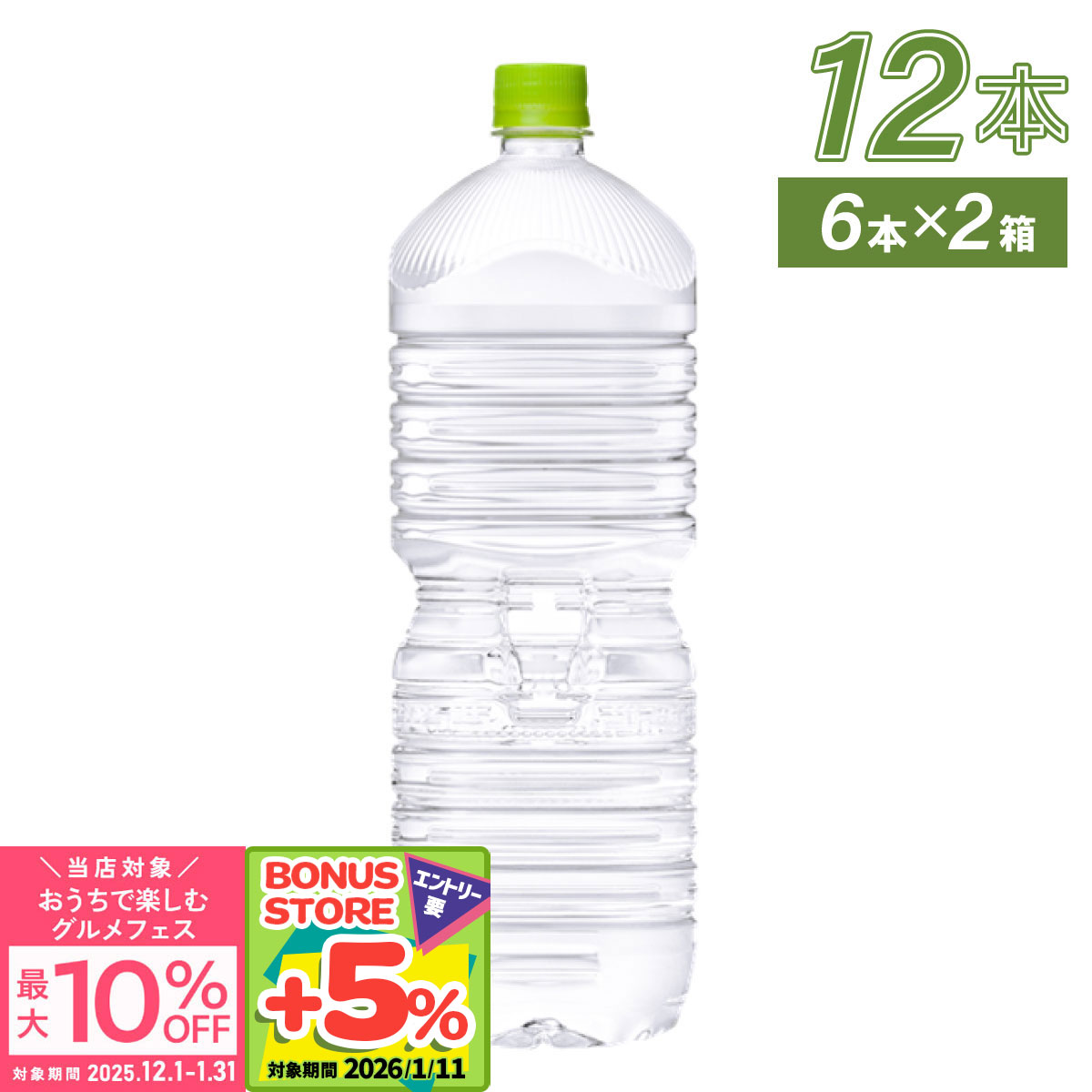 ●1/11は条件達成で最大P17%付与●水 2リットル いろはす 北海道の天然水 ラベルレス 2l 2000ml 6本入 2箱 12本 送料無料