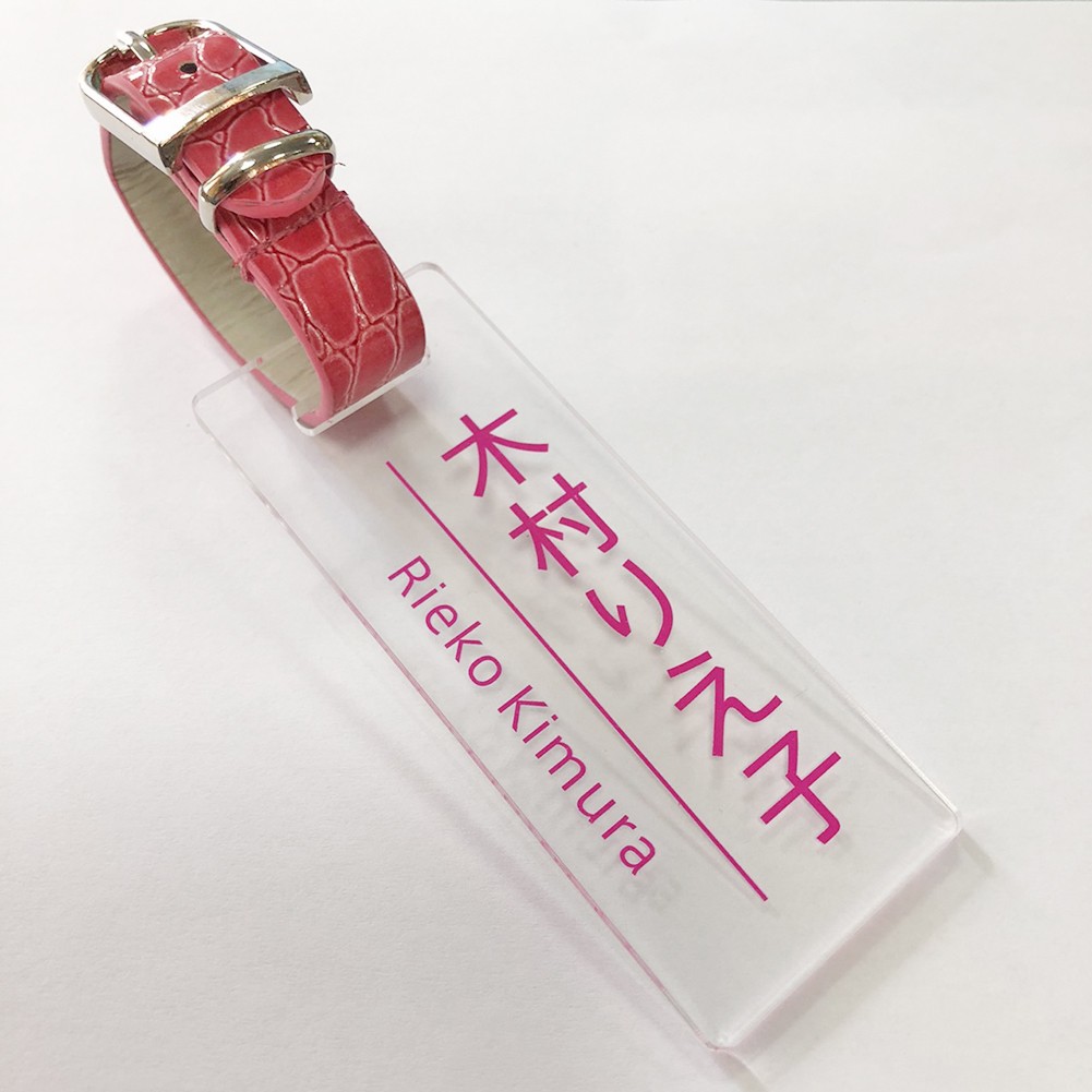ゴルフ ネームプレート ネームタグ 名入れ ピンク文字 ピンクベルト